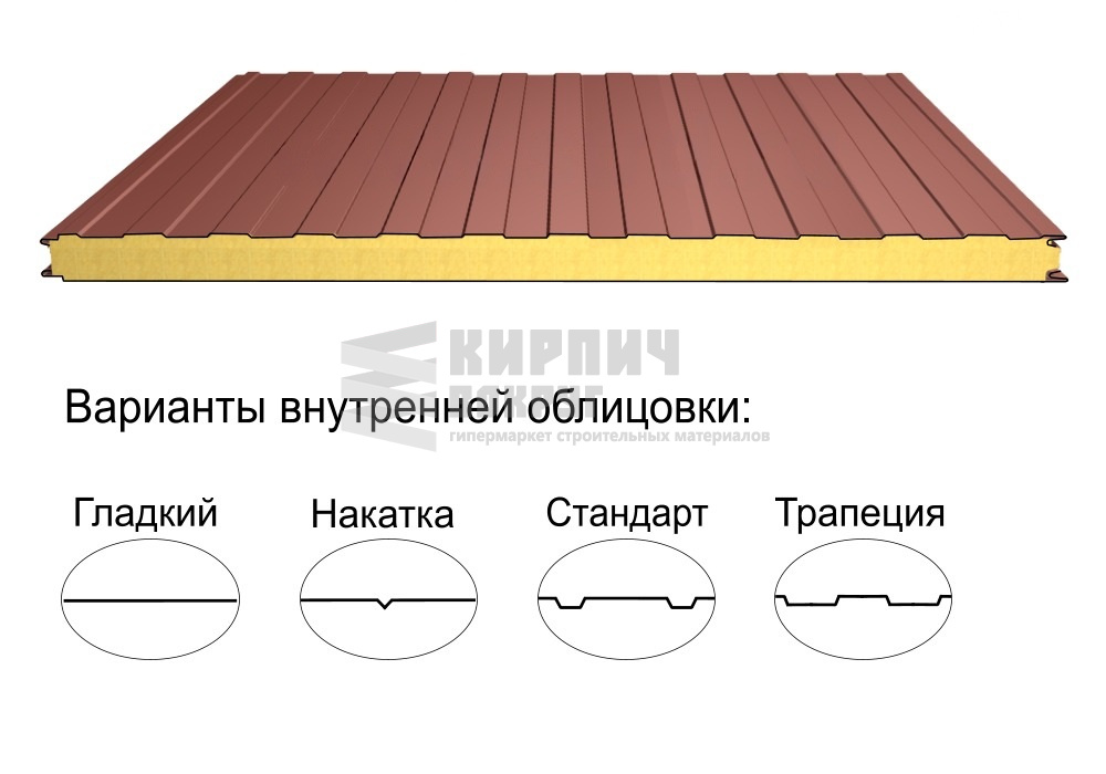 В интернет-магазине "Кирпич Вокруг" Вы можете купить Стеновая трёхслойная сэндвич-панель трапеция 50мм 1190мм с видимым креплением минеральная вата Полиэстер Panline в Домодедово, а наши специалисты готовы вам помочь с выбором по адресу: , или оказать консультацию по телефону: .